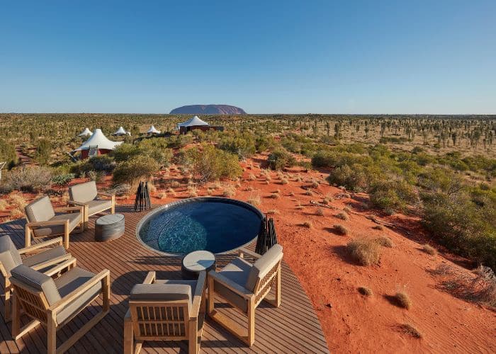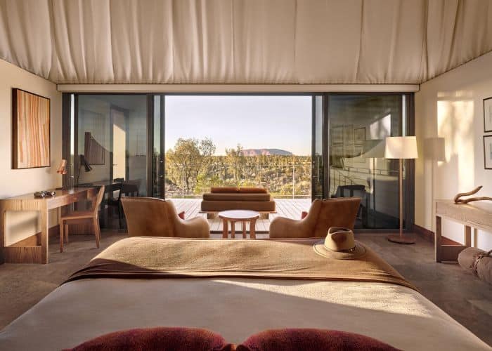 Fifteen tented pavilions blend contemporary design with the rugged beauty of the desert, each oriented to capture ever-changing views of Uluṟu that evolve with dawn light, blazing midday colours and dusk’s deepening shadows. From floor-to-ceiling glass to private balconies, the landscape becomes part of your living space in a way that few places on earth can rival.